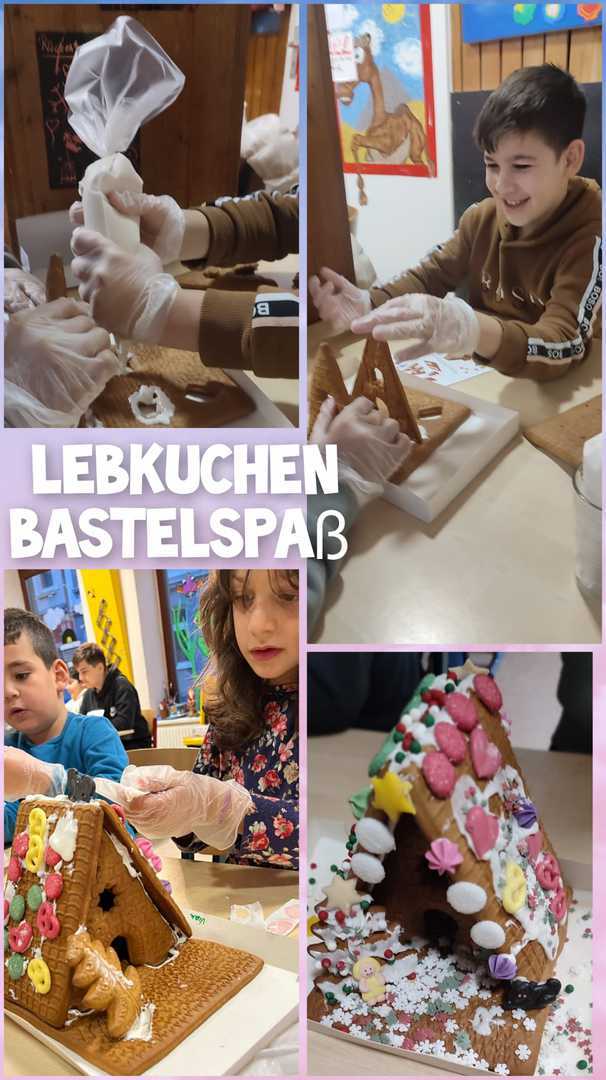 Und zwar wurden eigene Lebkuchenhäuser gebastelt, gestaltet und dekoriert - im Anschluss wurde jedes Lebkuchenhaus schön verpackt und die Kinder konnten ihr eigenes Lebkuchenhaus mit nach Hause